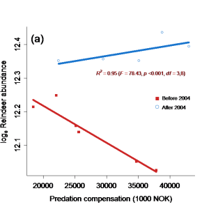 Pertinently, the same study also showed that received predation compensation one year (controlling for reindeer density) had a positive effect on herd size the next year.
